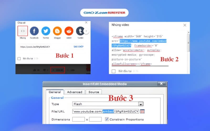 • Bước 2: Copy đường dẫn hoặc mã nhúng