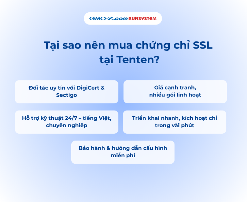Tenten giúp người dùng mua chứng chỉ SSL chính hãng, bảo mật mạnh mẽ với chi phí hợp lý.