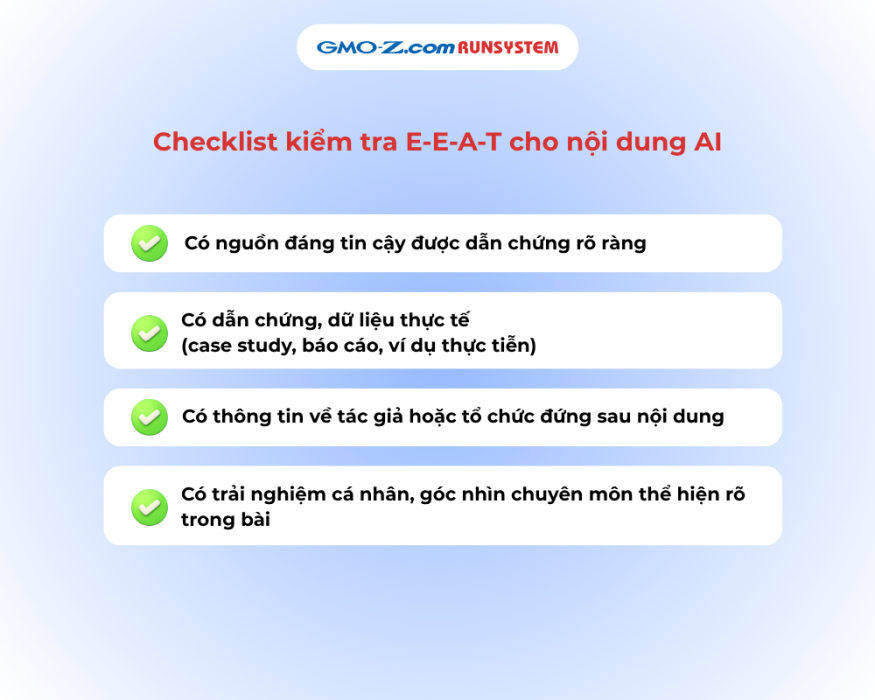 Checklist kiểm tra H-E-A-T cho nội dung AI: